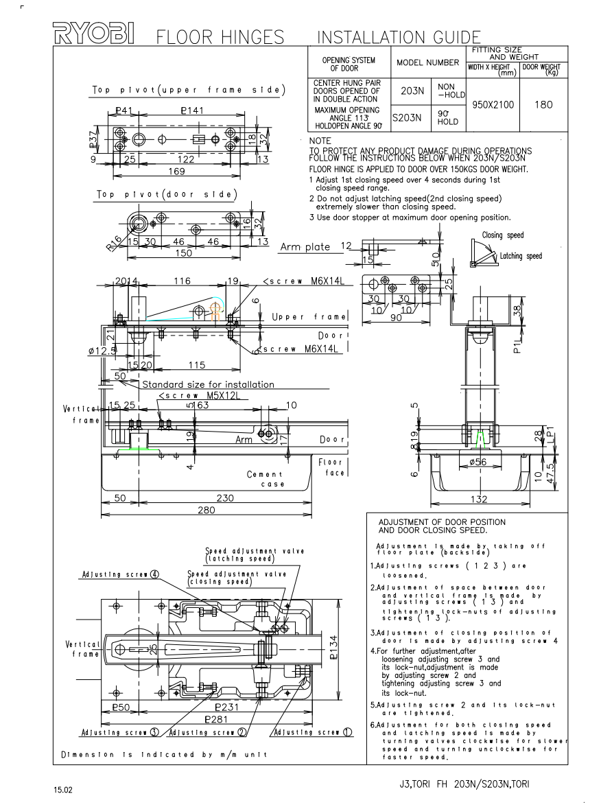 Kit Bisagra de Piso Ryobi Modelo S203n Para Puertas de Hasta 180kg SKU 1012005SA herralum